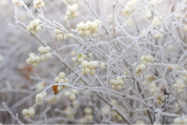 Noted for its very ornamental, pure white, waxy berries, Symphoricarpos albus (Snowberry) is a thicket-forming, deciduous shrub with upright to arching branches that is amazingly adaptable and undemanding. In early summer, a profusion of small, bell-shaped, white to pink flowers are borne in clusters in the leaf axils. Inconspicuous, they are of great interest to butterflies, hummingbirds and pollinators. The flowers are followed by abundant and attractive clusters of brilliant snow-white berries that persist well into winter. Birds, game birds and small mammals do enjoy them in winter months. The dense foliage of elliptic to rounded, blue-green leaves, remains attractive from spring to frost but provides little fall color.